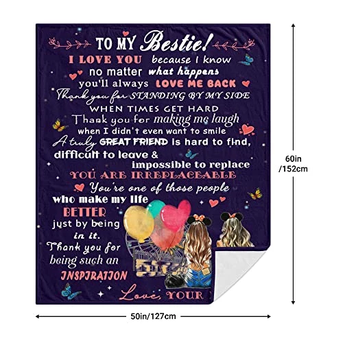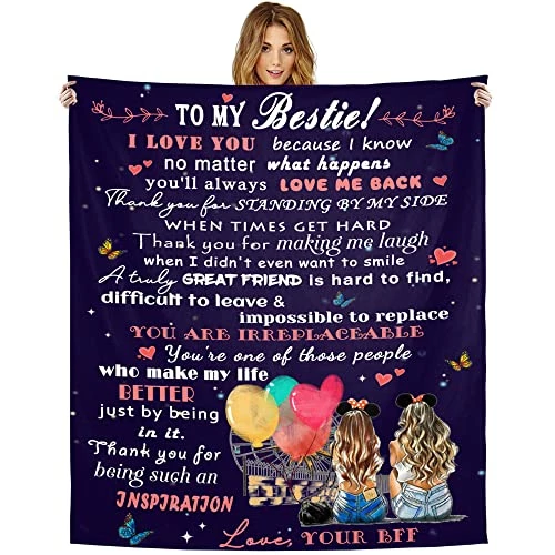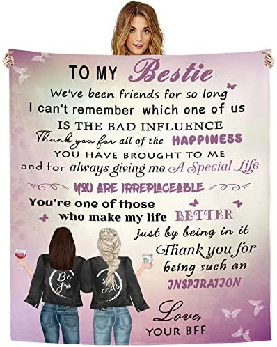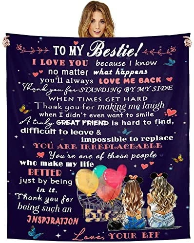 - Premium Quality Blanket: Our fuzzy fleece throw blanket for besties is made of 350 GSM high-quality flannel. Super soft, comfortable, durable and friendly to the skin. The personalized Best Friend blanket with fluffy and thick fabric keeps your bestie warm and cozy. Please note: One side of the throw blanket is printed and the other side is white
