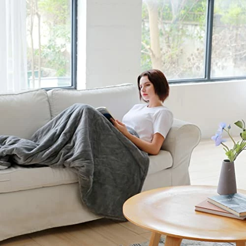 - 【Portable & Thoughtful Gift】The size of 50″ x 60″ is very portable. It’s a Cape Blanket, Napping Blanket, Travel Blanket, Knee Blanket, Sofa Blanket. It can be used for a nap in the office or watching TV on the sofa. Snuggle on your couch or bed with ultra-warm flannel heated throw blanket to enjoy happy family hours while watching favorite TV shows. Perfect thoughtful Gifts for this winter.
