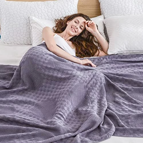 - Versatile Blankets: Not only beds and sofa blankets, this plush Waffle cotton blanket for women men can be used as a coverlet quilt bedspread bed cover or bed layering. The lightweight waffle blanket for adults kids is also suitable for outdoor use like going picnics, travelling, backpacking or just when you take a nap in your office or carry it in cars. This fluffy blankets can also be used as a decoration on your couch to add a stylish touch to your living room.
