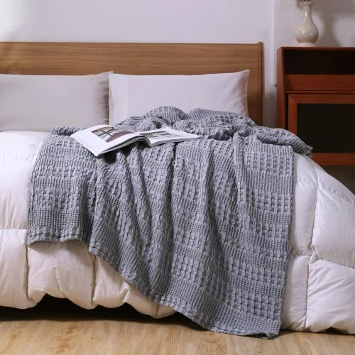 - WAFFLE WEAVE DESIGN – Classic stylish waffle weave design features three-dimensional, make our waffle throw blankets more soft and puffy, which helps with air circulation and enhance the breathability of this soft blanket. Meanwhile the soft throw blankets helps to adjust the temperature and absorb moisture, more breathable than other waffle blanket, creating a perfect resting place for you and your family