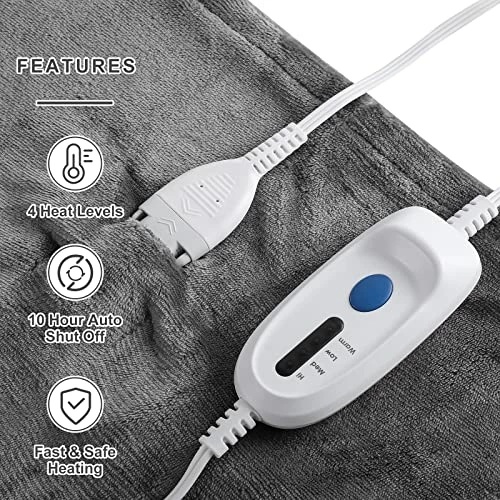 - Auto Safety Shut-Off: The electric throw features a 10-hour auto shut off, and the overheat protection function and ETL certification greatly promote the security of user experience. Heating blanket has 4 different temperature settings so you can customize the precise temperature you want. It’s also machine washable for easy care. Attention please: do not plug into the wall outlet until you have connected the controller cord to the blanket