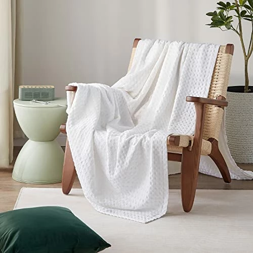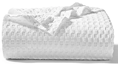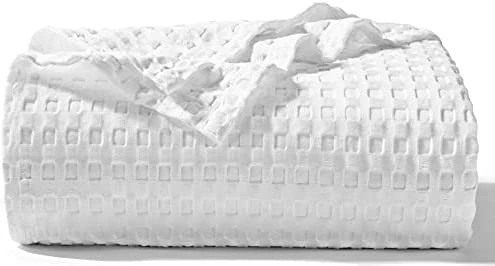 - 【100% Premium Material】Made of 50% cotton & 50% viscose from bamboo fiber, the waffle weave blanket help regulate temperature and wick away moisture so you can get to sleep easier than ever.