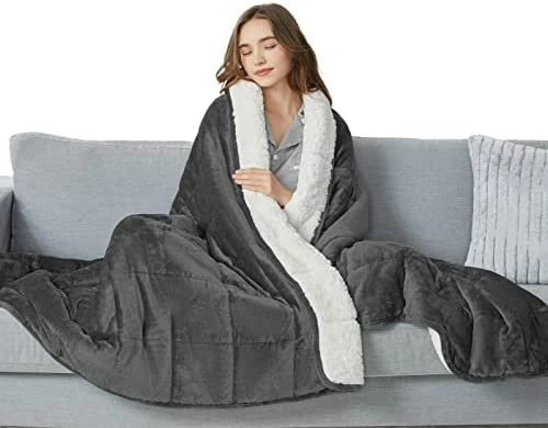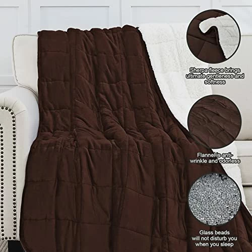 - COZY DOUBLE-SIDED MATERIAL: The soft weighted blanket has a double-sided design in flannel top and sherpa reverse. The fine suede of this flannel weighted blanket gives you the ultimate skin-friendly feeling. The sherpa is soft and comfortable, with good warmth retention and strong breathability.