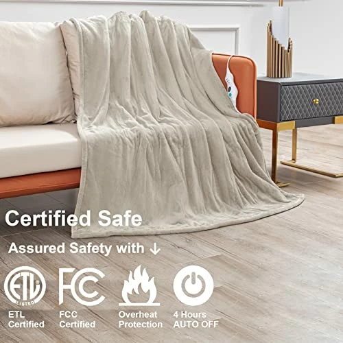- Certified Safe – This heated blanket comes with Overheat Protection, ETL Certification and 4 HOURS AUTO OFF to ensure energy saving and safety for you, this Heating blanket can also be used as a normal blanket after detaching the controller, A Warm Birthday or Christmas Gift for your family members or friends.