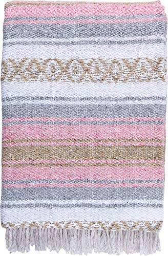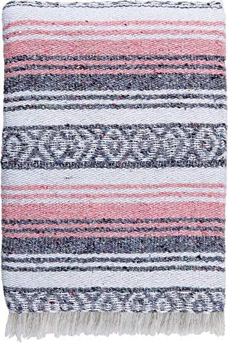 - MEASUREMENTS & MATERIALS: Our authentic Mexican yoga blanket measures approximately 51 x 74 inches and is woven from a blend of soft environmentally friendly recycled fibers.