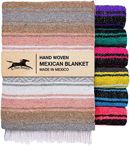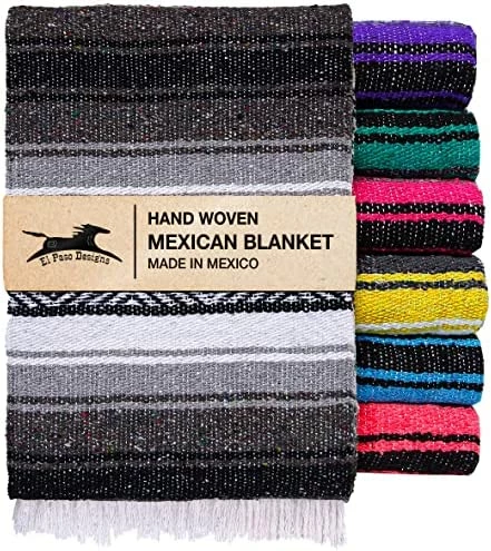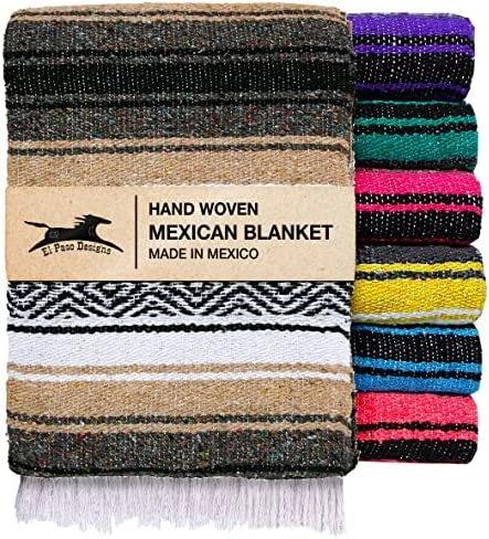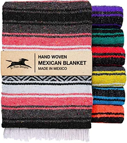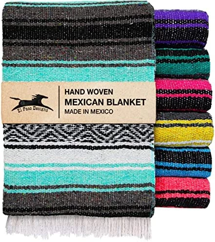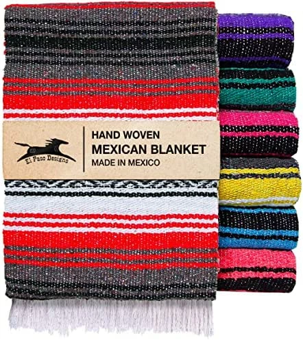 - TRADITIONAL HAND-MADE QUALITY: Carefully crafted by Mexican artisans located in Tlaxcala, Mexico, each tassel is individually hand-tied to produce a high-quality authentic Mexican Yoga Blanket. These blankets are soft, thick, and available in a wide variety of vivid colors.