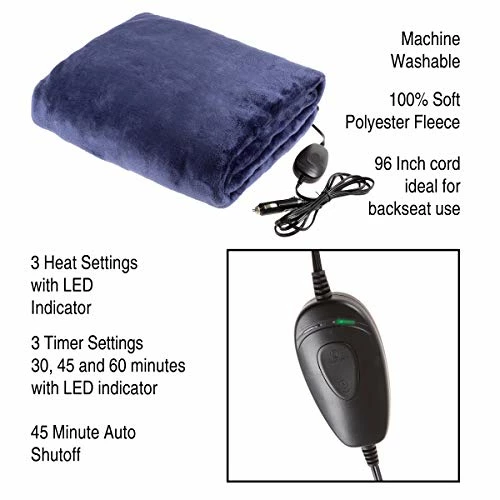 - CAR ADAPTABLE- This soft 12-volt electric blanket plugs into any car, truck, SUV or RV cigarette lighter. The blanket features a 96-inch long cord and heats up quickly, making it the perfect cold weather accessory for your car or emergency kit.