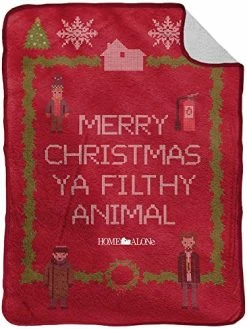 - PERFECT FIT & FUN DESIGN – Add a touch of decorative enchantment to your room with our fashionable and super soft Home Alone sherpa blanket. Sherpa blanket measures 60 x 90 inches. Blanket features your favorite Christmas movie. Blanket has a soft sherpa feel in the back. Fun and colorful design is sure to be a fan favorite.
