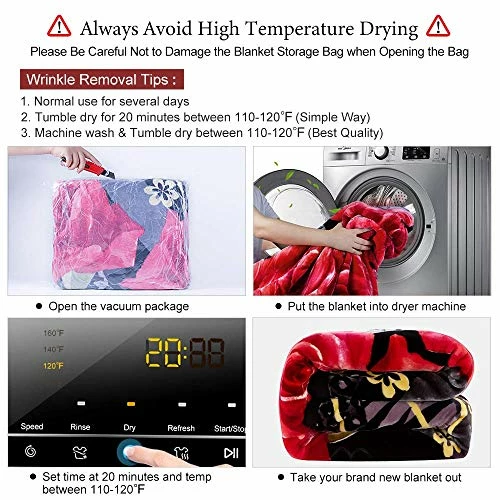 - SAFE SHIPPING – JML plush fleece blanket coming with vacuum package, the blanket maybe have wrinkle when opening the bag, you can follow the way of thrid picture to remove wrinkle