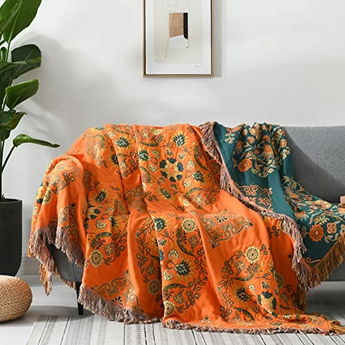 - 【100% Cotton Muslin Blanket】This orange bohemian blanket is made of 100% cotton with dense weaving, it’s skin friendly and healthier than other fabric. This muslin bed blanket is as soft as baby blanket, receiving blanket, swaddle blanket and nursing blanket.