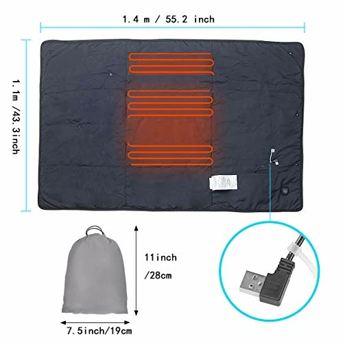 - [BUILT-IN USB CABLE] – This camping blanket has built-in USB cable in a zipper pocket, it convenience to be powered by a power adapter(not included) or power bank(not included), no worry about a power outage, perfect for outdoor activities like camping, hiking or watching sports events in a stadium. Also the large zipper pocket could store & secure your personal belongings.