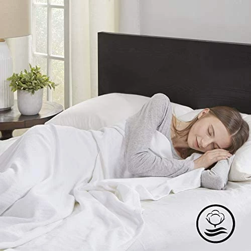 Cozy up in one of the softest cotton blankets on the market. We take the highest quality cotton and spin it into a very smooth and soft material that we call Liquid Cotton. This blanket’s cotton material virtually eliminates pilling to give you a lasting blanket that you will not have to replace year after year. Our Liquid Cotton blanket has reduced shrinkage compared to other cotton blankets. Cotton naturally wicks away moisture and is breathable which helps regulate your temperature at night, giving you year round comfort. This blanket is also OEKO-TEX certified, meaning it does not contain any harmful substances or chemicals to ensure quality comfort and wellness.