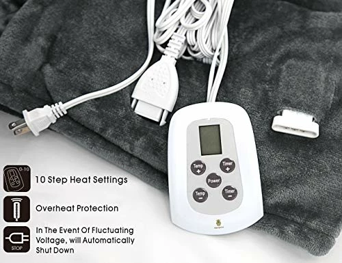 - More Function and Easy-to-Use Controller: 10 Heating Levels controller easy push button design. Our heated blankets can be programmable shut-off 30 minutes to 12 hours. After power on, if you do not set the power-off time, then the controller will turn off automatically after 10 hours, which provide extra security and save energy. Allow you to sleep at your preferred temperature setting. These queen size heated blankets with long power cable (17.34 feet extension cord) make it convenient for you using our electric blanket to get warm in cold winter.