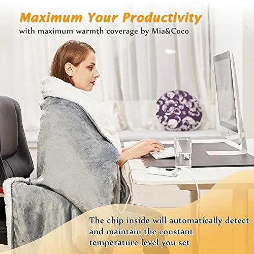 - 🤗🤗 Mia&Coco Electric Throw Blanket got you covered entirely in cold days ▶️ The electric blanket throw is 50″ x 60″. Suitable for use on the couch, sofa, and bed, or to wrap up while watching tv, reading a book, or office.