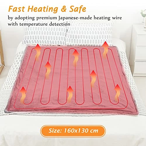 - 👍👍 Soft & comfortable, Fast Heating ▶️ The heated throw blanket, made of flannel and sherpa, offerring excellent warmth preservation and skin-friendly experience. No cold feel while touching even heating not started yet. Evenly distributed heating wires can heat up faster, help you obtain a comfortable situation in a short time.