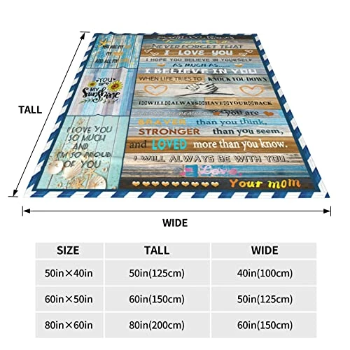Be the first to review “MPRUIU To My Son Blanket Gifts From Mom,Son Birthday Gifts From Mom,Flannel Blankets For Son Fill With Positive Encourage Love Words Of Love (60″ X 50″) Z5 To My Son” Cancel reply