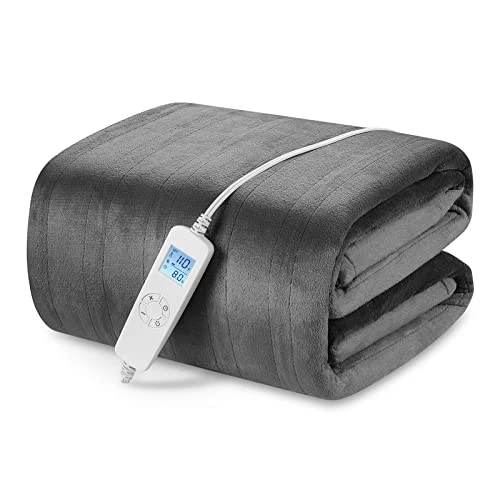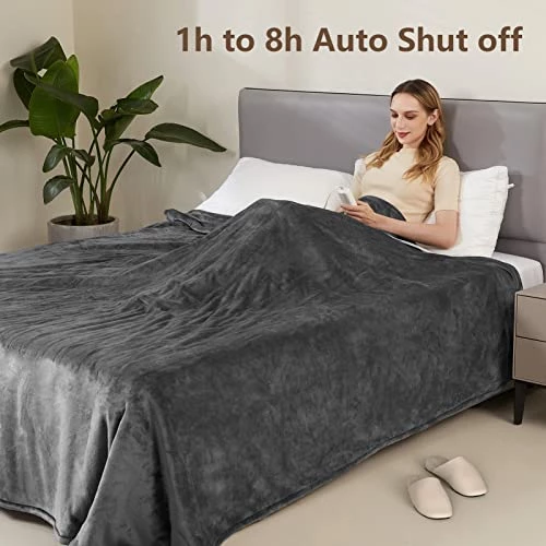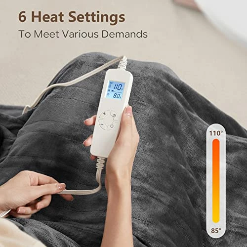 - 【Fast Heating with Safe Protection】- With PTC and NTC heating technology, the heated blanket heats up evenly and quickly with 6 heating levels (L, 2, 3, 4, 5, H), the corresponding temperature change is 85°F-90°F-95°F-100°F-105°F-110°F, which can make you obtain comfort status shortly. There are 8 (1-8H) levels auto timer provide safety and save electricity, in case forgetting to turn the electric throw off, meanwhile, the overheat protection accompanies you without worry.