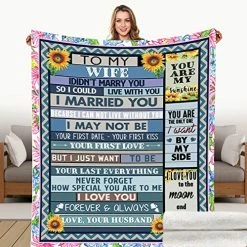 CHAOMIC To My Wife Blanket Valentine’s Day Gift For Wife Blanket Husband To Wife Air Mail Letter Quilts Romantic Light Soft Flannel Blanket For Anniversary Birthday (60×80 In)