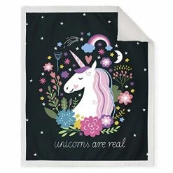 Jekeno Unicorn Sherpa Blanket Smooth Soft Print Throw Blanket For Sofa Chair Bed Office Travelling Camping Kids Adults 50″x60″ Unicorn4