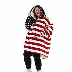 THE COMFY Original Quarter Zip | Oversized Microfiber & Sherpa Wearable Blanket, For Any Occasiont, Seen On Shark Tank, One Size Fits All – Stars And Stripes