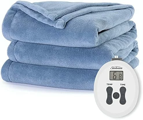 Sleep better with the Sunbeam Royal Luxe Heated Full Size Blanket and beat those winter blues. Indulge yourself with its rich and cozy royal luxe, wrapping you in warmth and comfort all night long. Easy to use detachable controller with 12 heat settings to choose from and a 12-hour auto-shut off feature for peace of mind. This stylish blanket comes in elegant color options that are sure to compliment any decor. Remove the controller and place the blanket into the washer and dryer for easy maintenance.