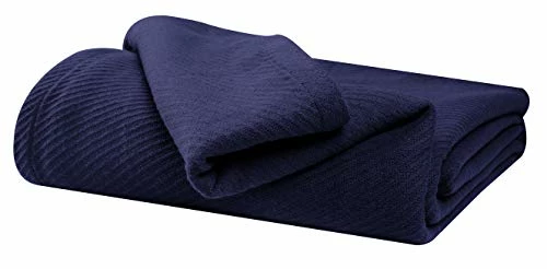 - 100% Soft Premium Cotton Thermal Blanket In Twill Weave – 102X90 Navy