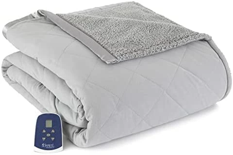 - KING-SIZE ELECTRIC BLANKET WITH QUICK HEAT FUNCTION: Heated blanket With programmable timer; Quick heat feature heats blanket to max for 30 min then drops to your last heat setting; Reversable from Quilted to Sherpa