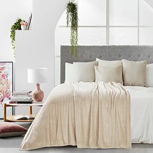 - SUPER SOFT & COZY – Made from fine premium 100% pure brushed microfiber fabric, which feels luxuriously smooth, rich, and fuzzy. The fleece blanket fabric has a special raised textured jacquard pattern with a fluffy velvety finish that is ultra soft to the touch and thicker and warmer than your typical flannel blanket, even those heavy wool thick blankets or cotton blankets.