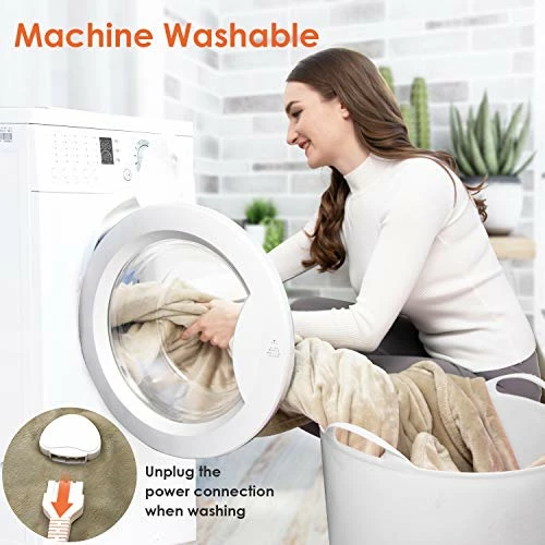 - [Machine-Washable]: Our electric heating blanket is easily to clean, just remove the adapter before washing. The detachable controller and the washable fabric materials help maintaining the hygienic and soft use of this 72×84 heated blanket for years.