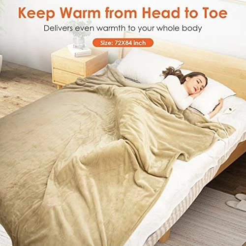 - [Luxuriously Soft & Comfort ]: Our electric blanket is made of soft flannel fleece. This smooth flannel ensures that the electric throw blanket provide luxuriously comfort and super soft both sides while working effectively to retain heat. And our heating blanket (blanket size: 72*84 inches, heating central area size:33*73 inch) is also big enough, which can cuddle you comprehensively. Please cover a regular blanket on the heated blanket for best warming use.
