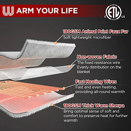 - ★ [ ETL and FCC Certified ] 4 hours auto shut off, overheat protection ensure your safety during normal use. Please read the instructions carefully before use to avoid local overheating caused by improper use, resulting in burns and burnt blankets.