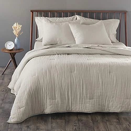 - ⛅THREE LAYERS OF SOFT AND COMFORTABLE BEDDING- Super soft and breathable, this cotton bed blanket is made from three layers of lightweight cotton gauze and has a linen-like feel and a crinkled texture. Perfect option for warm sleepers and summer months. Made in multiple natural colors, this blanket enhances your bed Linen closet in any season. Makes for great housewarming gifts as well as a gift for mom!