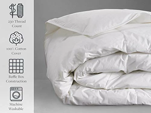 - LUXURIOUS COMFORT – 230 thread count, 100% cotton cover adds an extra layer of soft comort to the plush down. The sewn-through baffle box stitch keeps the down filling in place for years of comfort.