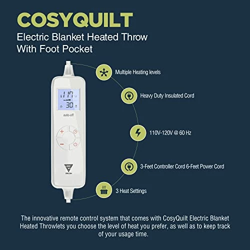 - LOWER YOUR ELECTRIC BILL – WHILE STAYING WARM ALL NIGHT: YOU GET TO CHOOSE how toasty warm you prefer to be when you sleep. Enjoy 3 different heating level. We know some of you LIKE IT HOT and you like to SAVE MONEY. Imagine this… turn off your homes heat at night and cuddle into our heated throw blanket. Then wake up to a reduced electric bill.